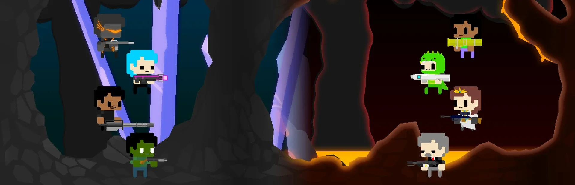 A free-to-play multiplayer side-scrolling shooter, where you use weapons and items in endless PvE modes, against your friends in PvP modes, or in a quick game of soccer using the unique game mechanics!