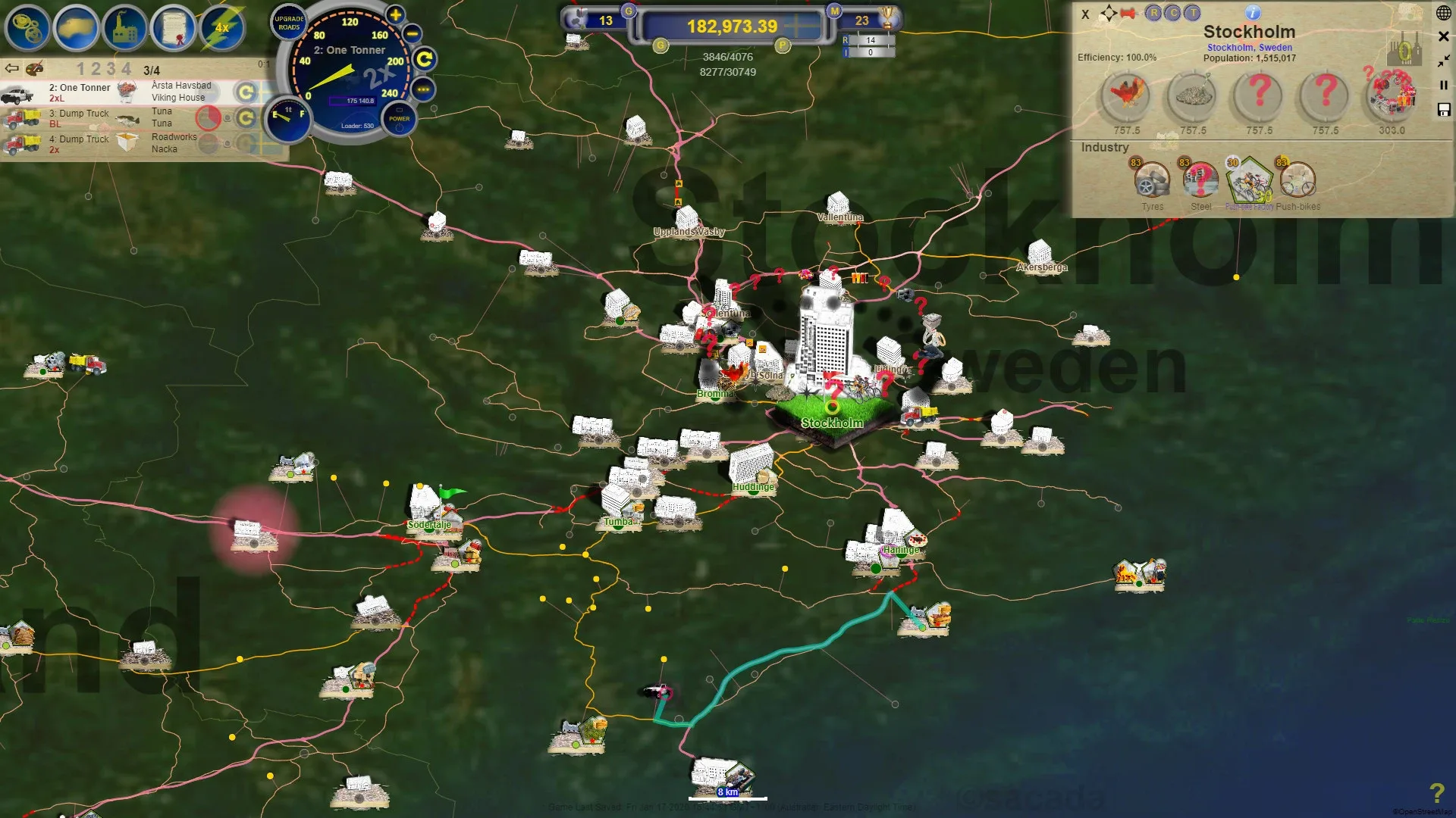 Logistical 2: Sweden has over 2,000 towns and 1,000 businesses to complete.