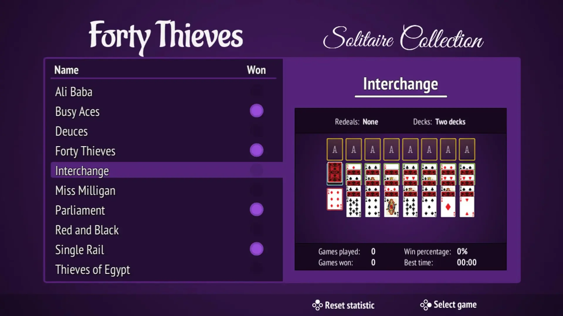 Do you love Forty Thieves Solitaire (also known as "Napoleon at St Helena" or "Big Forty"), but want a bigger challenge? Now you can play Forty Thieves Solitaire and other popular variants with different levels of difficulty.
