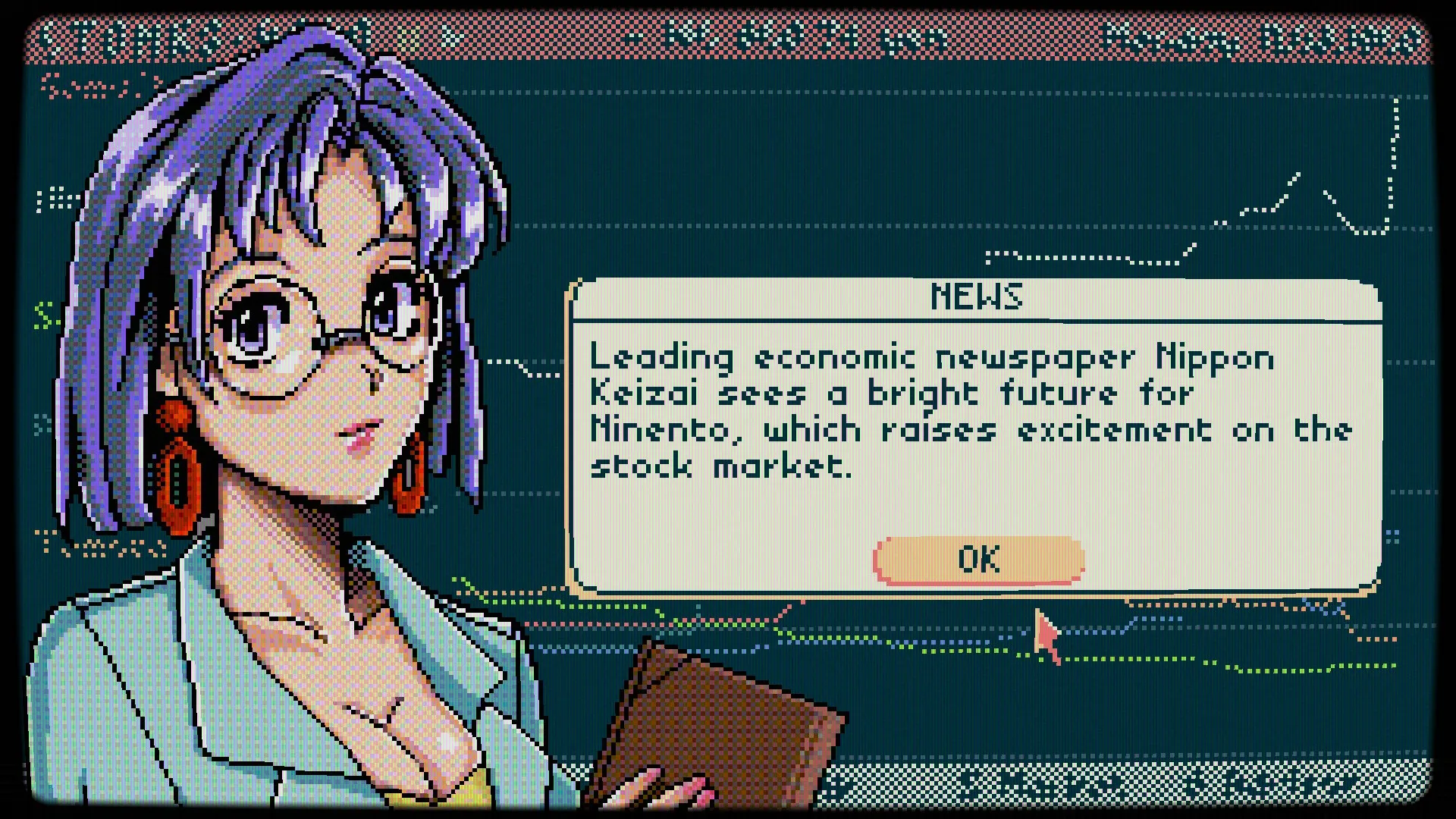 A simulator of a businessman on the Japanese stock market in the 80s and 90s. Chill, catch a retro vibe, and watch your profits grow in the text-based game STONKS-9800.
