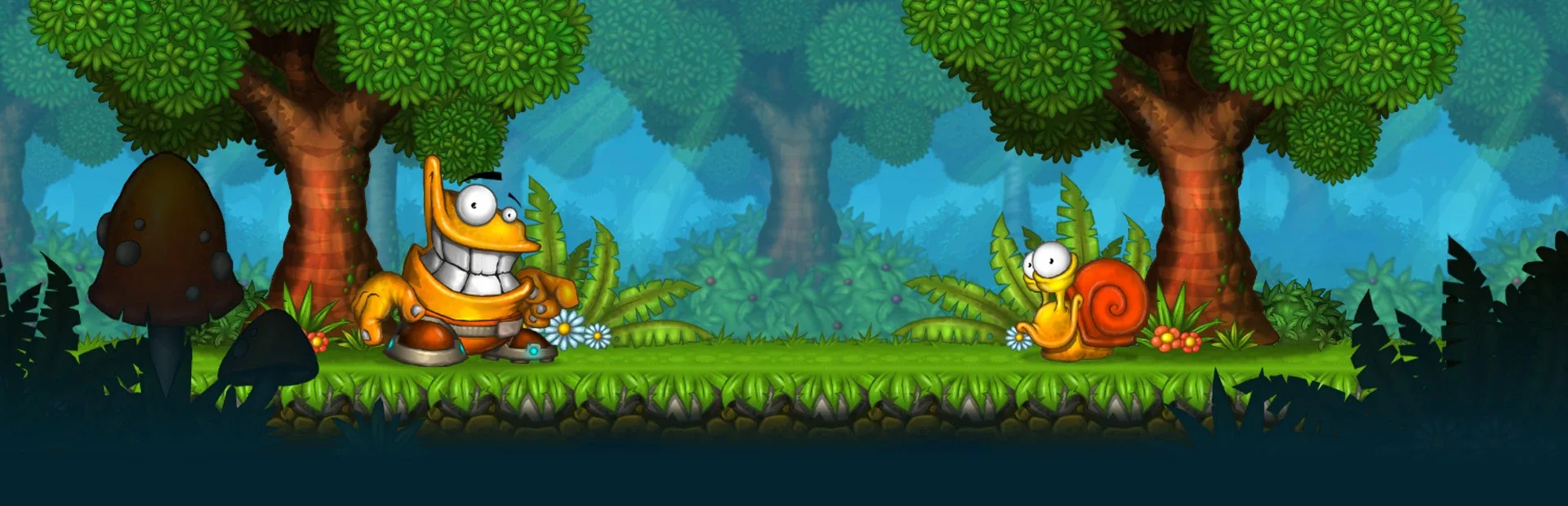 Oozi: Earth Adventure is a classic 2D platformer with old school gameplay - no puzzles, no punishment, just 100% pure classic platforming fun! Its most prominent features are HD visuals and beautiful hand-drawn art, but despite its visual style, it’s a good fit for all kinds of gamers. The variety of difficulty levels – from Kid to Hardcore – allows everyone to enjoy the game regardless of their skill level. It tells the story of Oozi - an alien spaceship pilot who crashed on planet Earth, lost his space suit and needs to find his way home.