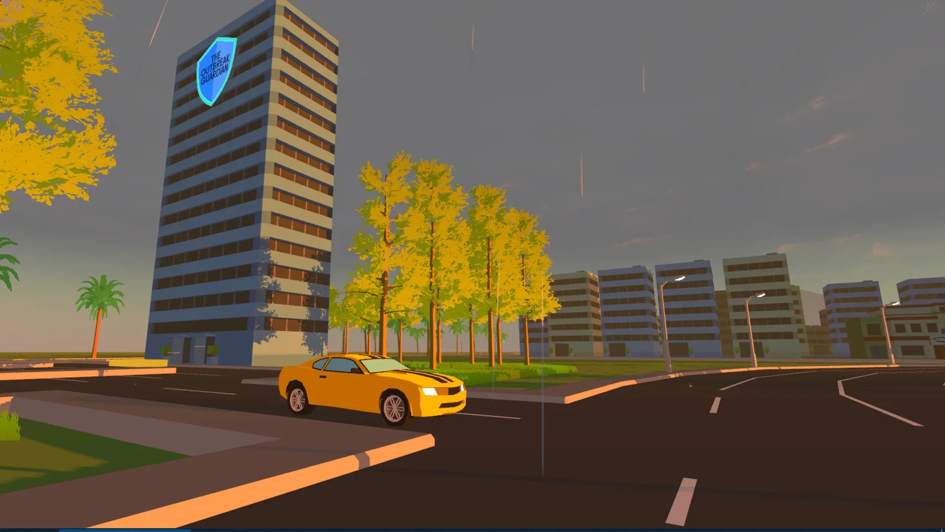 The Outbreak Guardian is a third person open-world game where you are in charge of ensuring the welfare of the citizens of Patriam by managing the cities resources and agents, which involves delivering equipment and some driving.