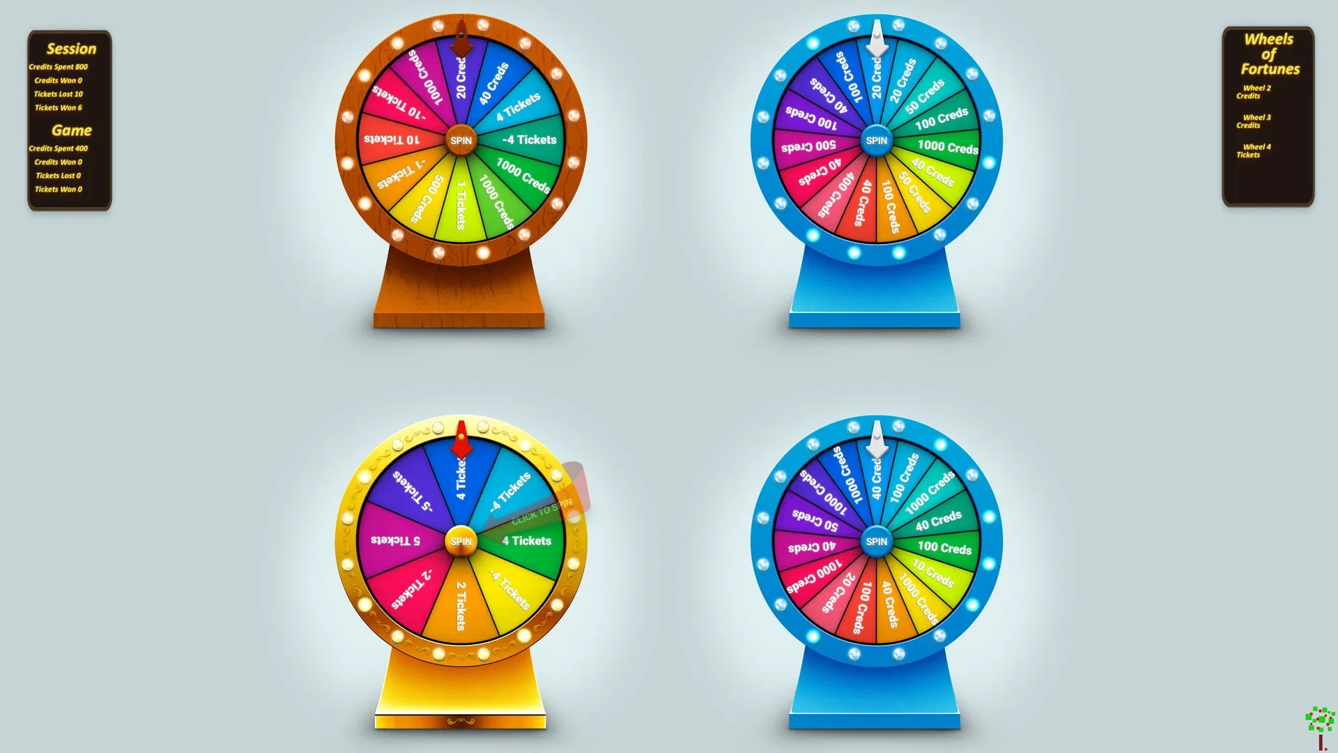 Wheels of Fortunes is one of the My Neighborhood Arcade Ticket Machines. In Wheels of Fortunes, spin up to four wheels at a time to earn credits and tickets—you could win big…or you could walk away with fewer tickets* than you started with.