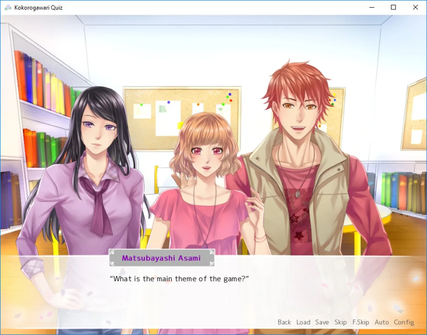 Kokorogawari Quiz is a short fun quiz which will reward you with trivia about Kokorogawari and its developer team. Answer the quiz correctly and be rewarded with some pre-created content and jokes by the dev team not shared elsewhere! ;)