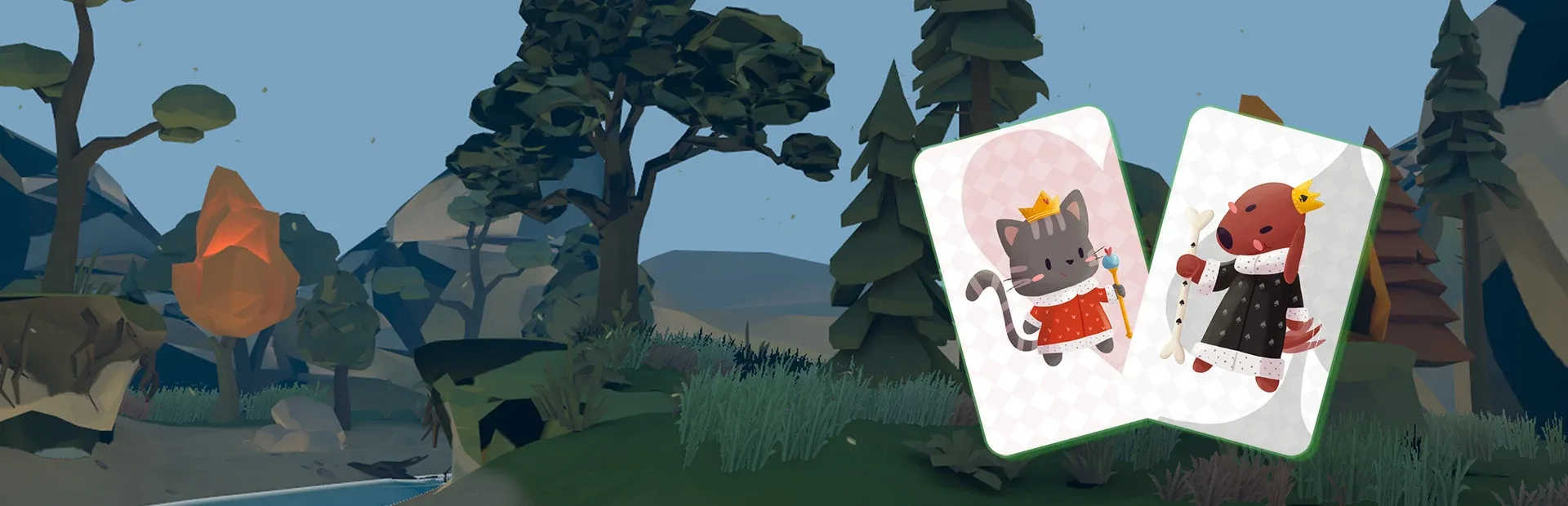 Play classic solitaire where you feel like it, in the city or the countryside, with your pet friends Buddy and Lucky.