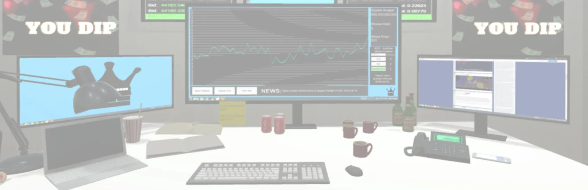 Trapped within the offices of a large hedge fund called Sipadel Finance. It's your job to take a sip and make the apes dip.