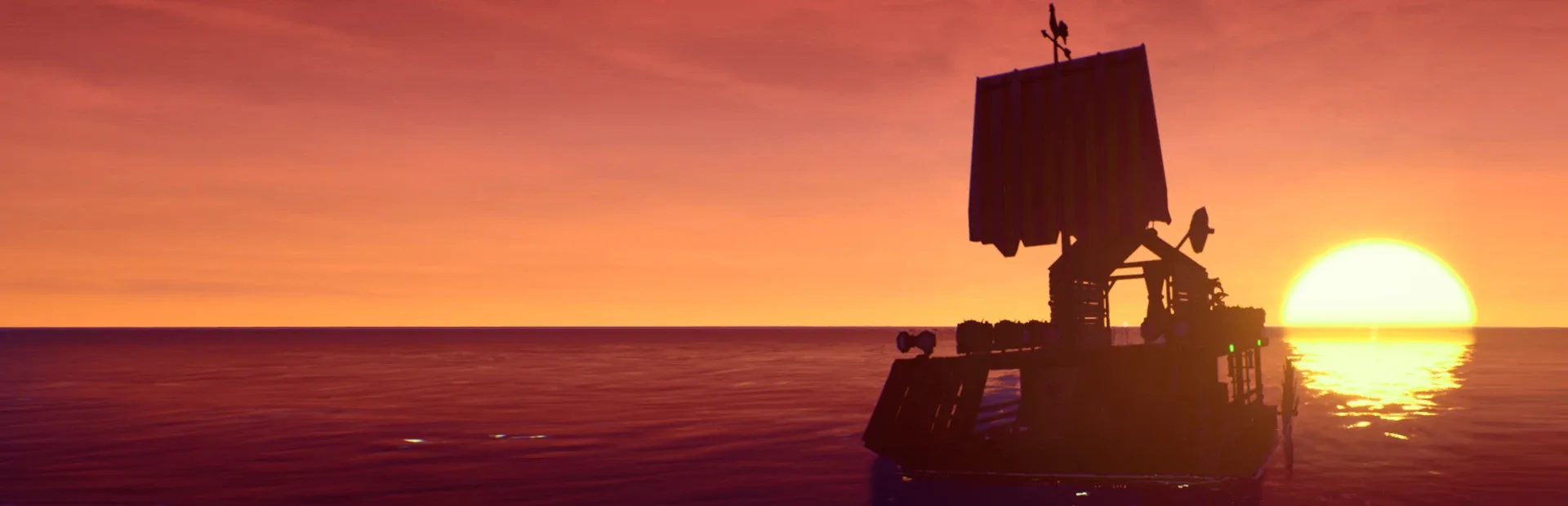 Travel simulator in the improvised boat around the world completely flooded with water.