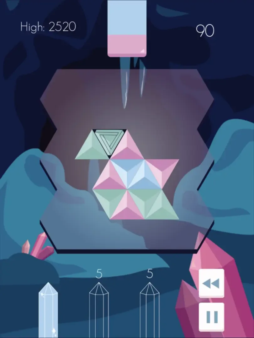 Swipe to move your triangle around the board match three or more colors together to make them disappear you lose when you are completely surrounded But don't fret, you have power-ups, combos, and multipliers to help you get out of jams and increase your score Crystal Cove is not a typical match three game children love it for its simplicity and adults love it for its depth I hope you enjoyed playing!