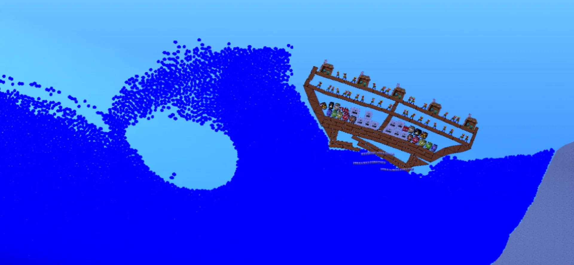 Water Physics Simulation & Sandbox! Build ships and let them sink! Build cars and let them sink! Use bombs and destroy ragdolls. Play with natural disasters or create towns. Do you like liquid simulations? Do you like the flow behavior of water? Do you like bomb explosions? If yes, then you will have much fun with this physics sandbox.