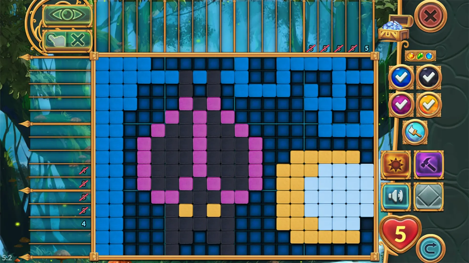 Legendary Mosaics - The Dwarf and the Terrible Cat invites you on a whimsical puzzle adventure. Something isn't right in the Enchanted Forest. A sinister spell has been cast by the Wicked Wizard, covering everything in eternal darkness. Team up with a cat and Dwarf duo and explore the depths of the forest! Save the fairies in Legendary Mosaics - The Dwarf and the Terrible Cat.