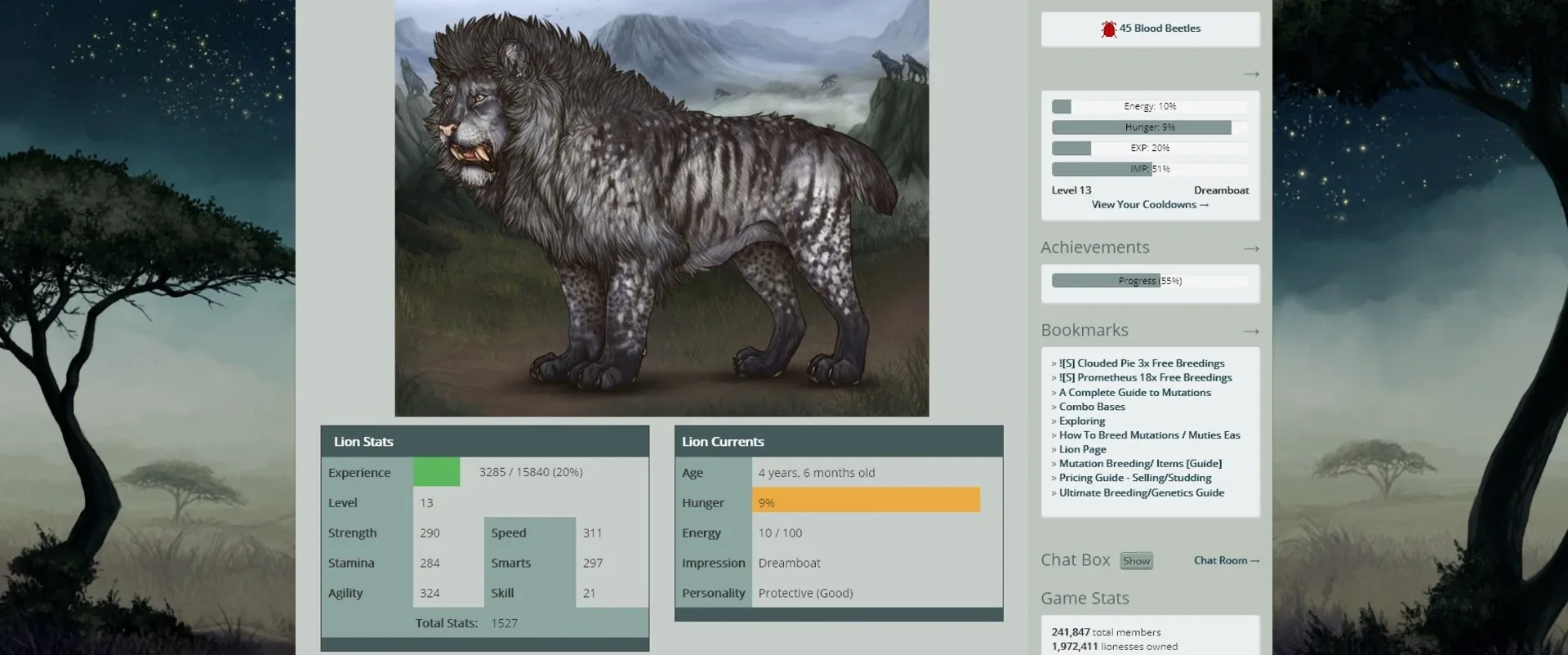Lioden is a browser-based animal simulator where you get to build your own pride of lions and lionesses. On top of exploring different maps and participating in monthly events, players can interact with each other, breed lions for rare features such as mutations and complete daily quests for rewards.