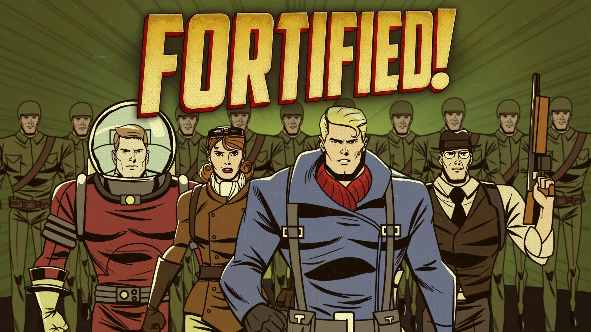 Fortified is an explosive strategy shooter where players will defend the Earth against a menacing Martian invasion in the 1950s. Play as one-of-four pulp inspired heroes as they fight swarms of terrifying robots with an arsenal of Cold War era weapons and experimental technology. Protect the city by building a network of defensive structures, commanding an army, and jumping into battle against dangerous sky scraping attackers. Fight for Earth alone or with up to four players for the ultimate co-op defense experience.