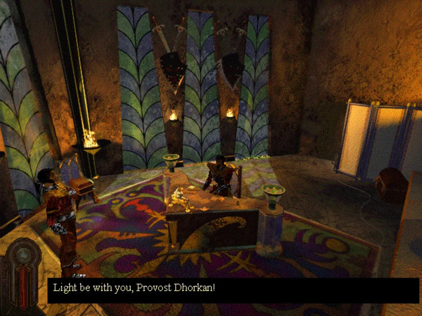 Dark Earth is a post-apocalyptic action-adventure game for the PC. Dark Earth takes place several centuries in the future, when a meteor collision with Earth tossed up great clouds of dust that blocked out the sun. Earth's remaining survivors began to seek refuge beneath small openings in the clouds, the few places light could be found. Those that remained in the 'dark earth' were hunted by strange creatures, infected with the darkness. To shelter themselves from the dangerous 'dark earth', the people began to form cities beneath the light called 'Stallites'. At the time of the game, most of the citizens of the stallite have forgotten their history and now worship the light as a god. The stalites are run by 'Sun Priests', who maintain order and prevent the creatures of darkness from harming the city. The game follows the story of Arkhan, a "guardian of fire", protector of the stallite 'Sparta' and the Sun Priests. After an attack on the sun priests, Arkhan has a poison thrown into his face that begins to infect him with the dark sickness. He begins to mutate into a creature of the dark and has to find a cure before his transformation is complete. Along the way, he is treated as an enemy by most of his former friends while he struggles to uncover the conspiracy behind the attack.