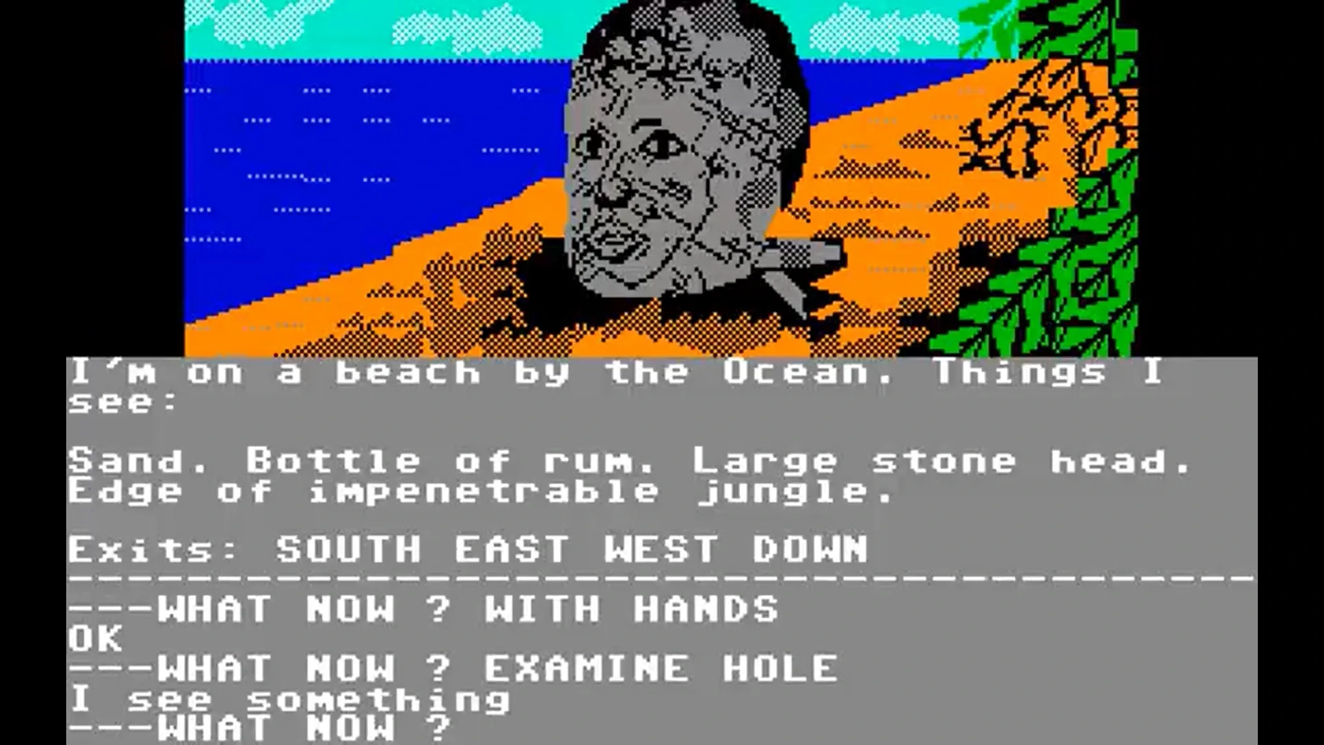 In this text adventure you have to find the secret of a remote pacifc island while facing the dangers of an active volcano and and impending hurricane. At the end of the game you receive the password which lets you play part two of this two-part adventure game.