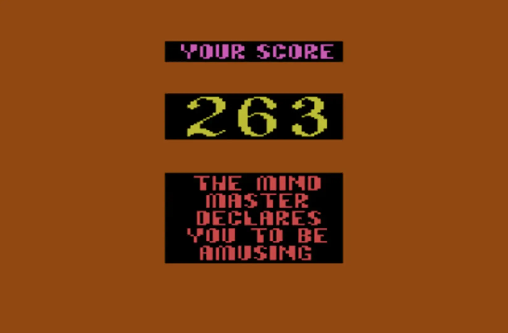Are you smart (and fast) enough to escape from the maze of the MindMaster? Featuring realistic first-person graphics, four separate Multi Load segments, maze maps, real-time clock, Alien stalker, direction indicator, sliding force field obstacles, and more!