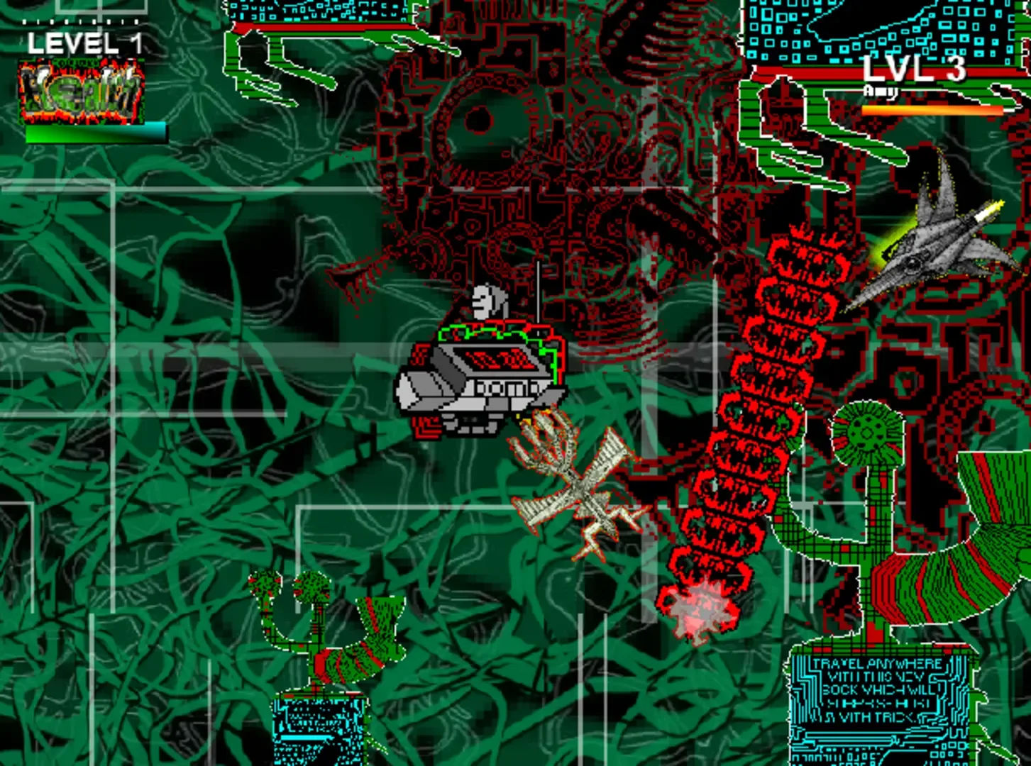 A shoot 'em up / adventure full of drawings and sounds. There's one sound that's really annoying at one point, and that is the best sound in the game. Some of the drawings look as if they were drawn by a 1 year old baby. You can even explore a solar system and read a tiny book while fighting a sun demon.
