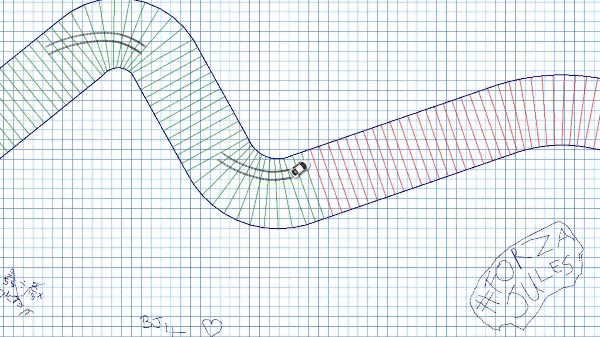 Time trial racing on notepaper. 25 levels to race on, plus an editor to create more. Wide open rally stages, tight street circuits, technical hairpins and fast sweepers.