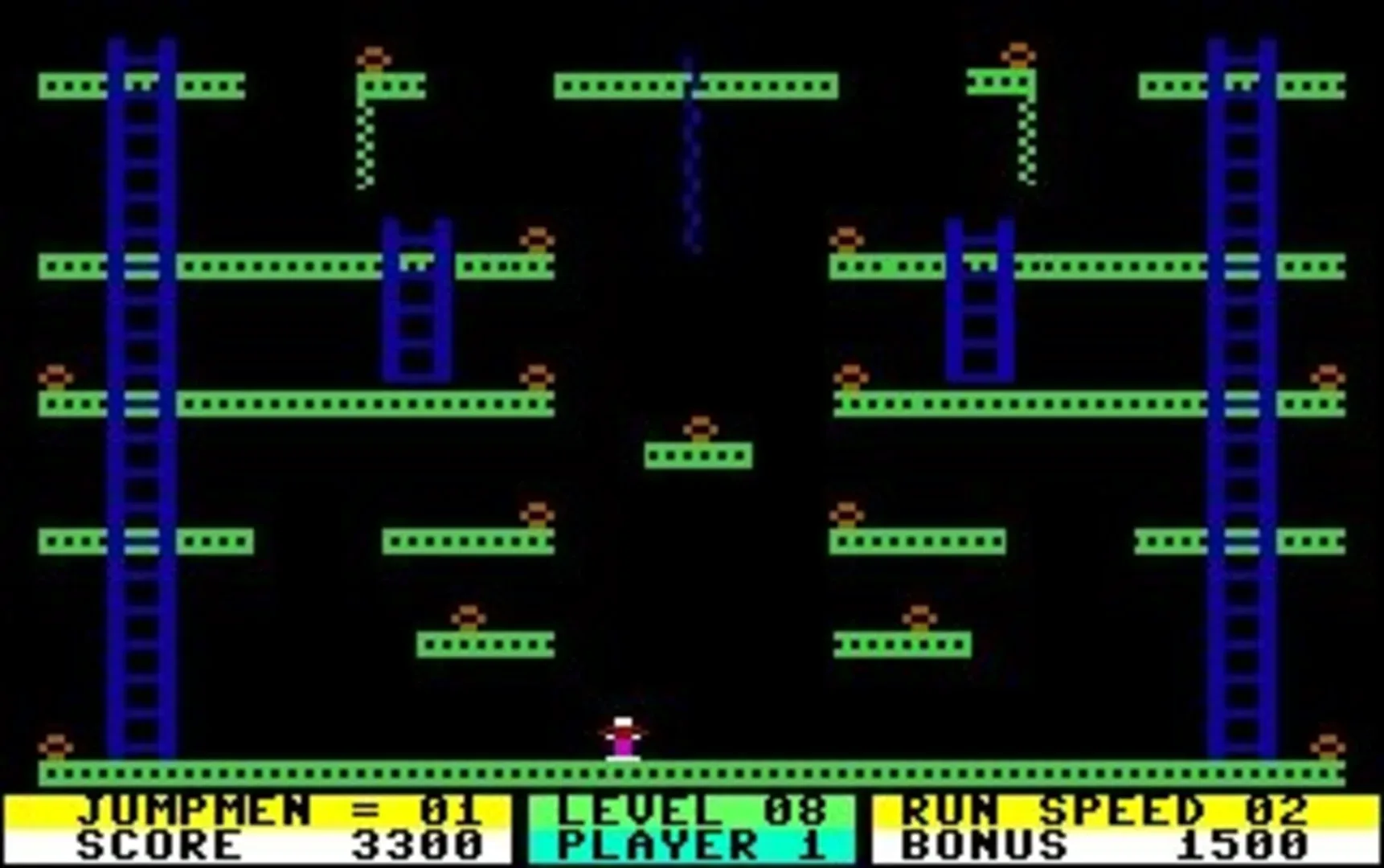 Jumpman is a platform game written by Randy Glover and released by Epyx in 1983. Originally developed for the Atari 8-bit family, versions were also released for the Commodore 64, Apple II, IBM PC, and ColecoVision.