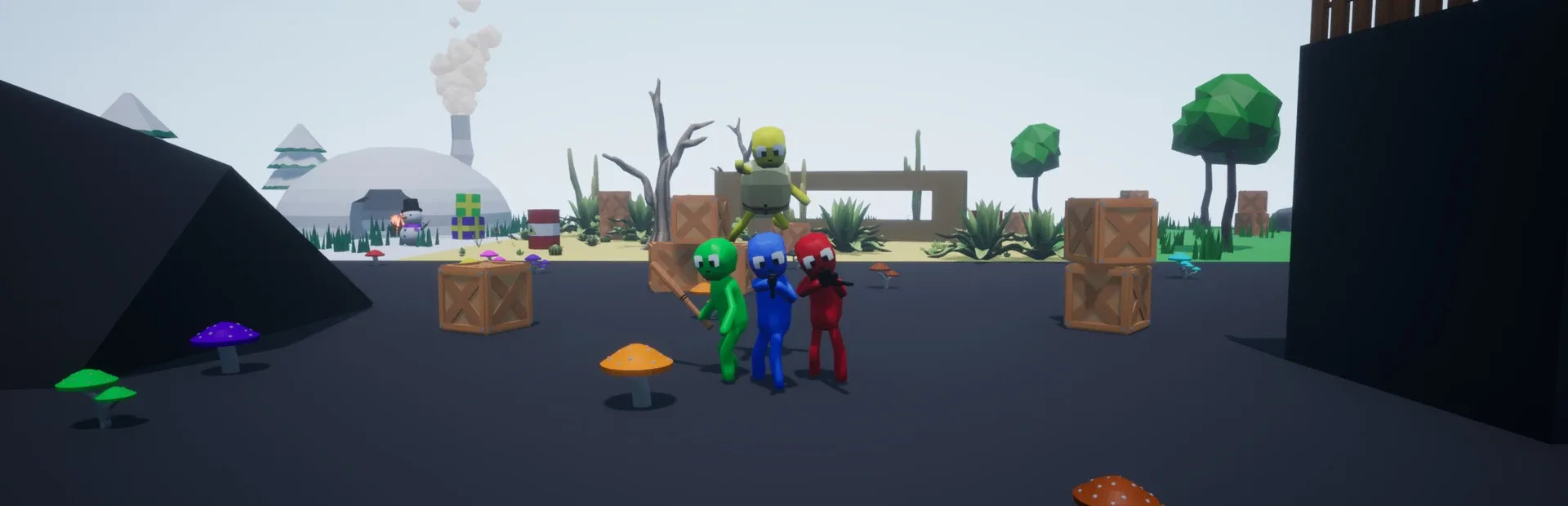 A fast-paced third-person shooter with up to four players. Fight with a variety of 30+ weapons on 25+ maps. Grab a weapon as quickly as possible, whether it is a simple pistol or a viking helmet, and get to killing.