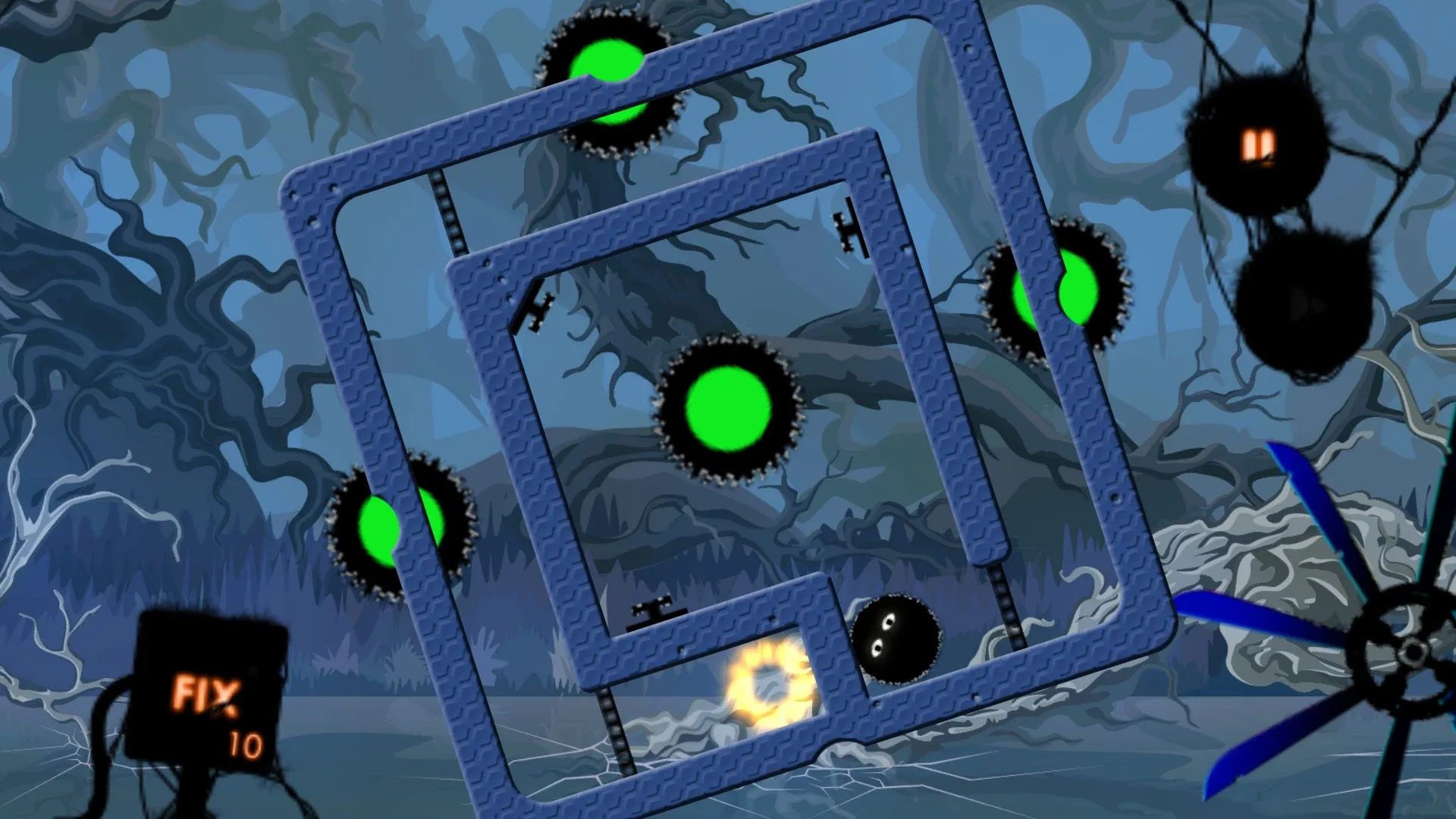 Freeze the time is a puzzle game with a 2D view. The goal of the game is to bring the character to the exit. When a button is pressed, the doors open. There are also saws on the levels that must be avoided. By holding down the left mouse button, you can control the movement of the level.
