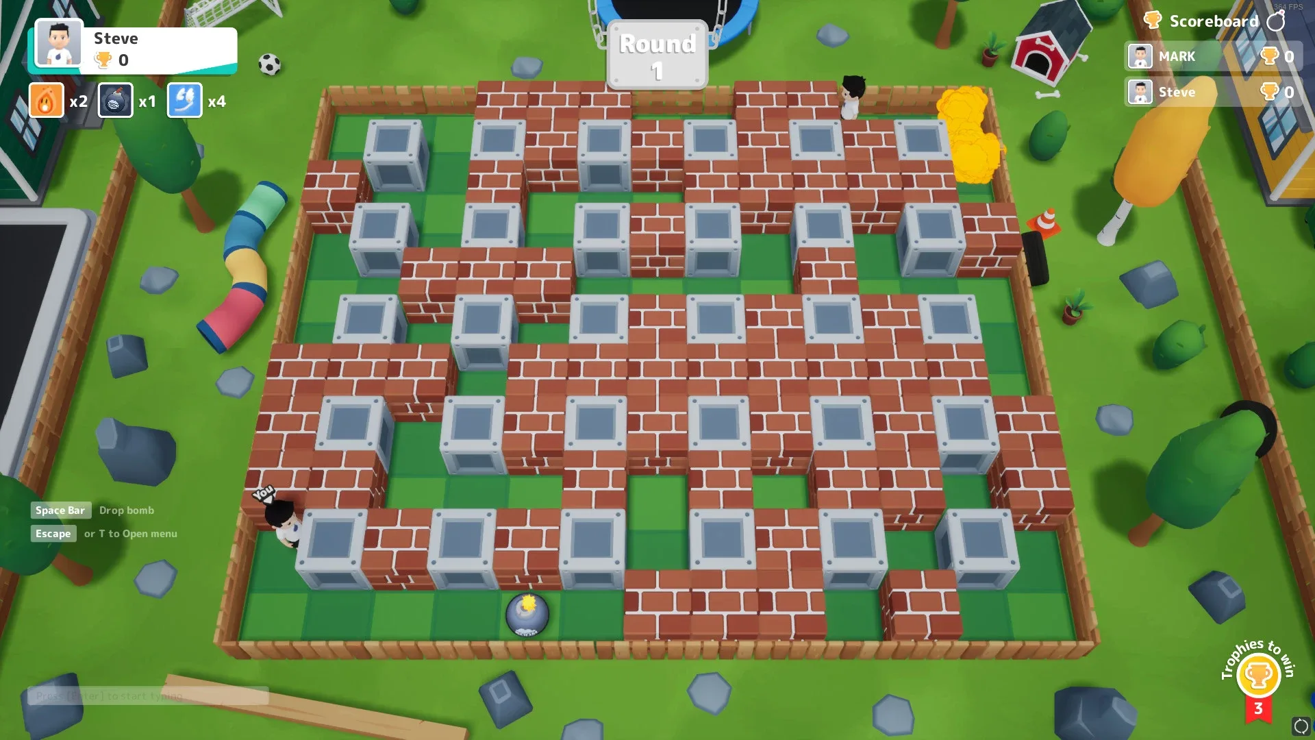 Boom Wars is an Action Multiplayer Game , Drop bombs, destroy blocks, pick up power-ups, eliminate other players and earn trophies to win .