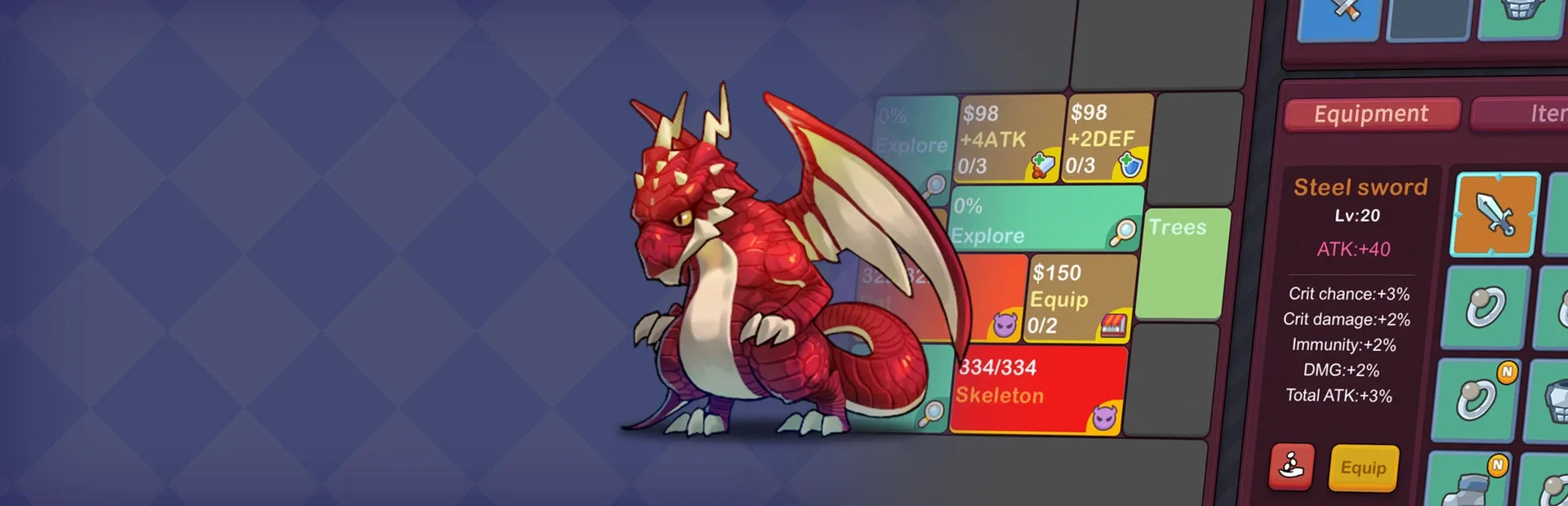 Minimal Dungeon RPG is a Simple Dungeon Crawler of RPG. Multiple rooms are connected into dungeons. Tasks, monsters, and rewards are all simplified into squares in the rooms. You can just click on the squares to play and crawl through the dungeons.