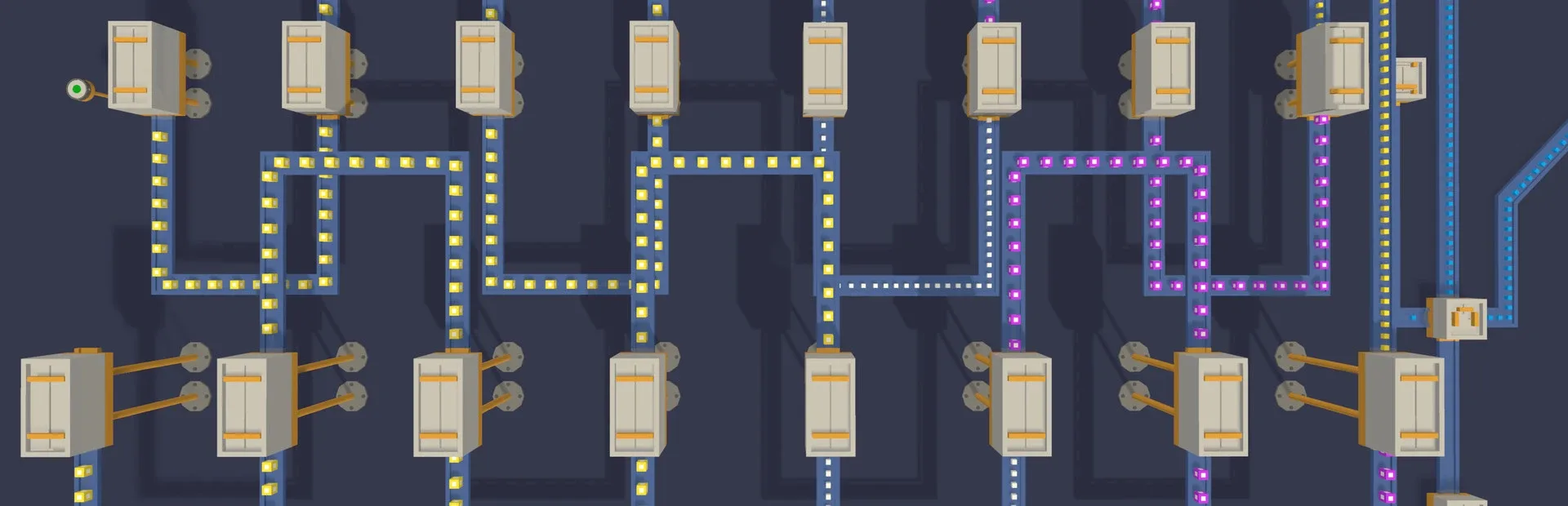 A conveyor-based production and logistics sandbox including smart machines, node based conveyor belts, logic and recipe based item generation and powerful design time construction. Create and connect Miners, Splitters, Factories, Containers, Vaults and more...