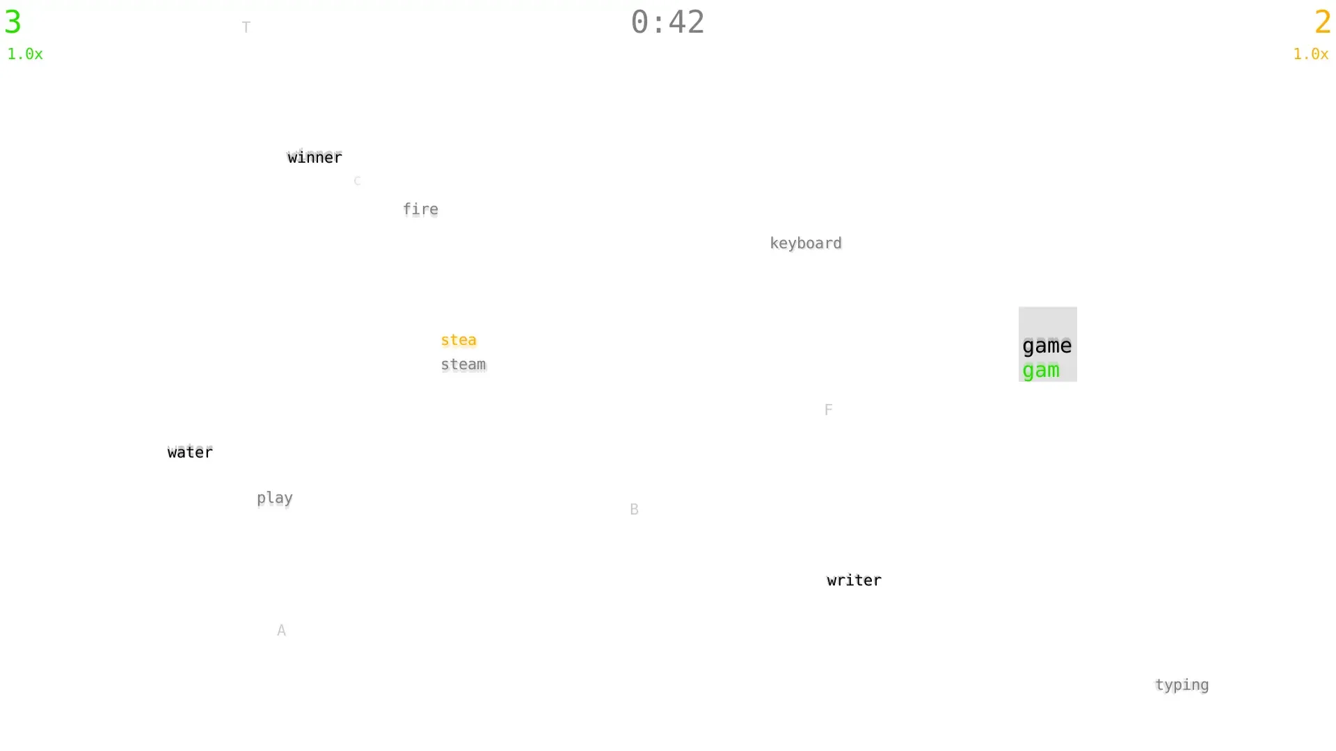 Typefighters is a competitive multiplayer game where two players battle each other using their typing skills. Its variety of modes does not only emphasise typing speed and correctness, but also other skills like reaction time, sustained attention, creativity, tactics and anticipating the opponents moves. Aside from being a tool to settle arguments on who is the best on a keyboard, the game can also be used for training purposes.