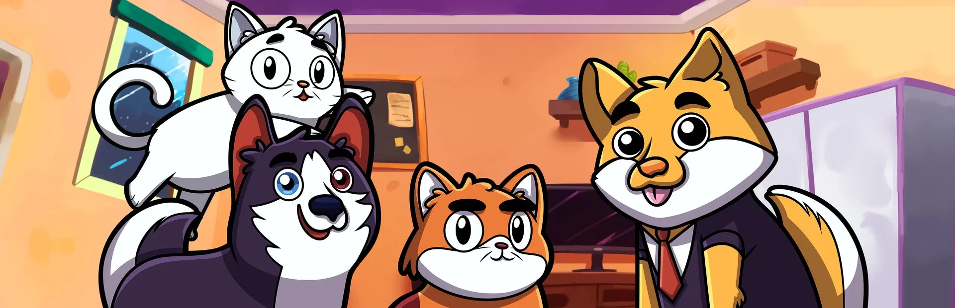 Some pets got lost from their owners in an office and now need to work together, using boxes, mats, buttons, climb on shelves and tables or just make a mess trying to find them in this colorful co-op game!
