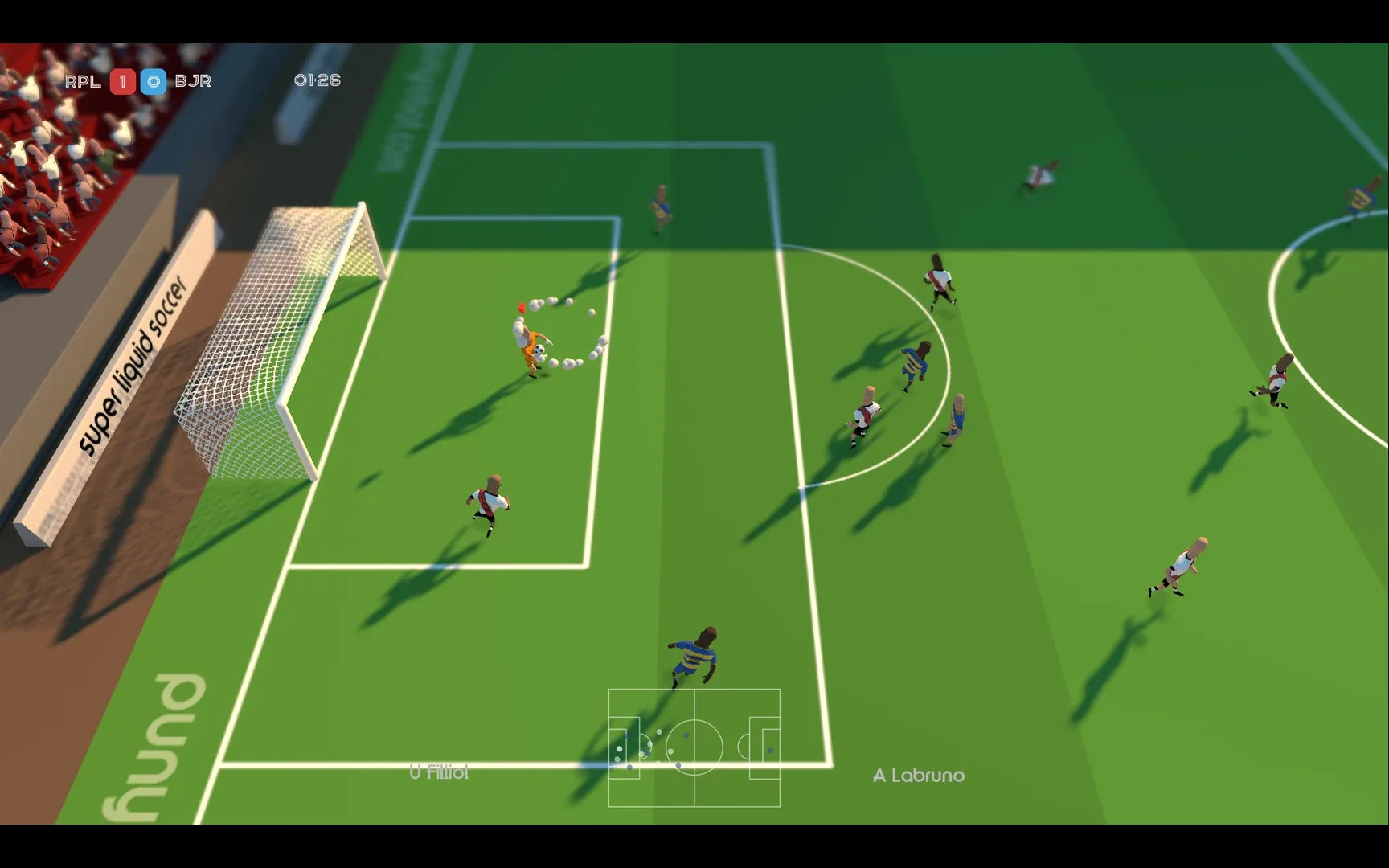 Super Liquid Soccer is a fun arcade style 7 aside soccer/real football game coming soon for PC and Mac. A game for those less worried about simulating every blade of grass and more about epic battles amongst friends, last minute winners, cynical fouls, bullet headers and questionable tactics.