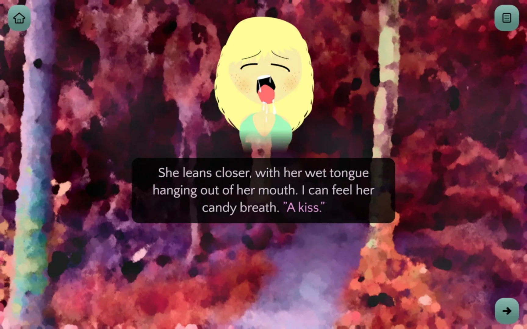 Surreal horror themed visual novel, with lots of branching paths, blood, tears and twisted pitch-black humour. You're playing as Ashia, who's forced to marry her slimy uncle, suffering from surreal nightmares at night. Then she meets Novalie. And then things gets really strange.