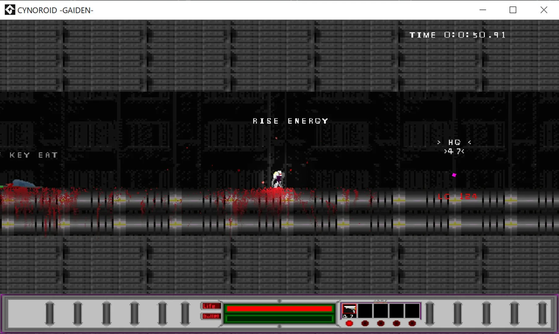 CYNOROID FORSAKEN is a free aim platformer that uses the mouse to aim and It is a free aim platformer where you aim with the mouse and move with the WASD keys. With multiple weapons, a laser chainsaw that can be used by right-clicking, and the ability to eat enemy carcasses.