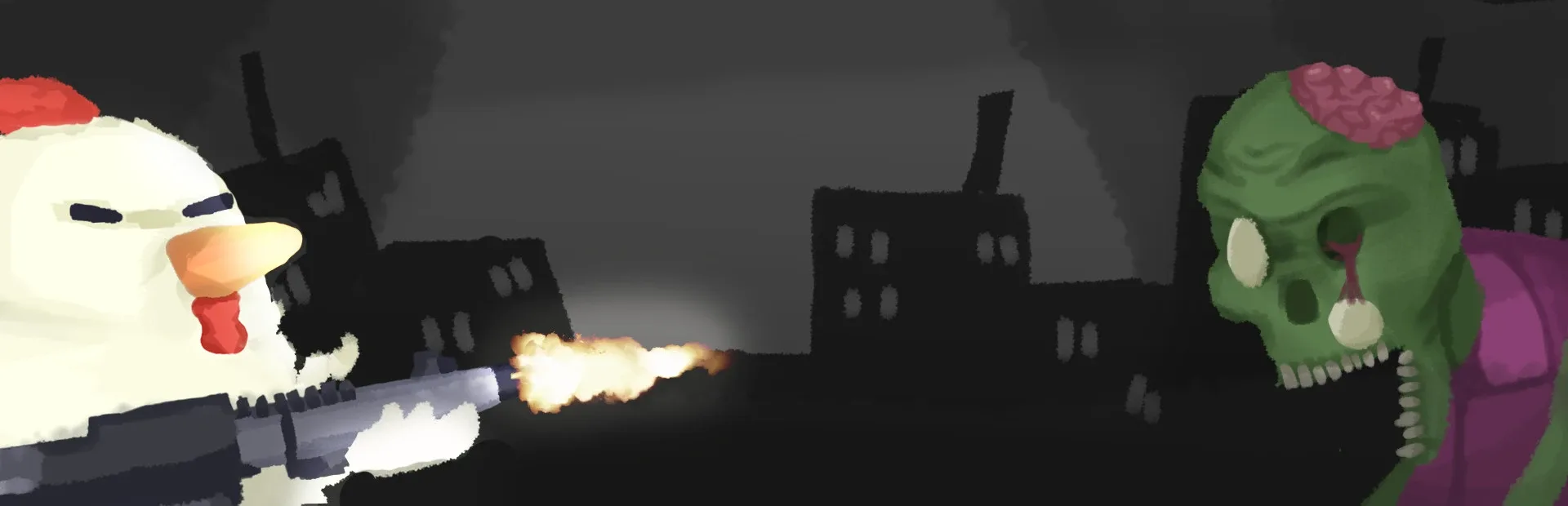 ChickenZ is an arena shooter where you have to fight in a post-apocalyptic location against crowds of angry zombies that will try to eat you.