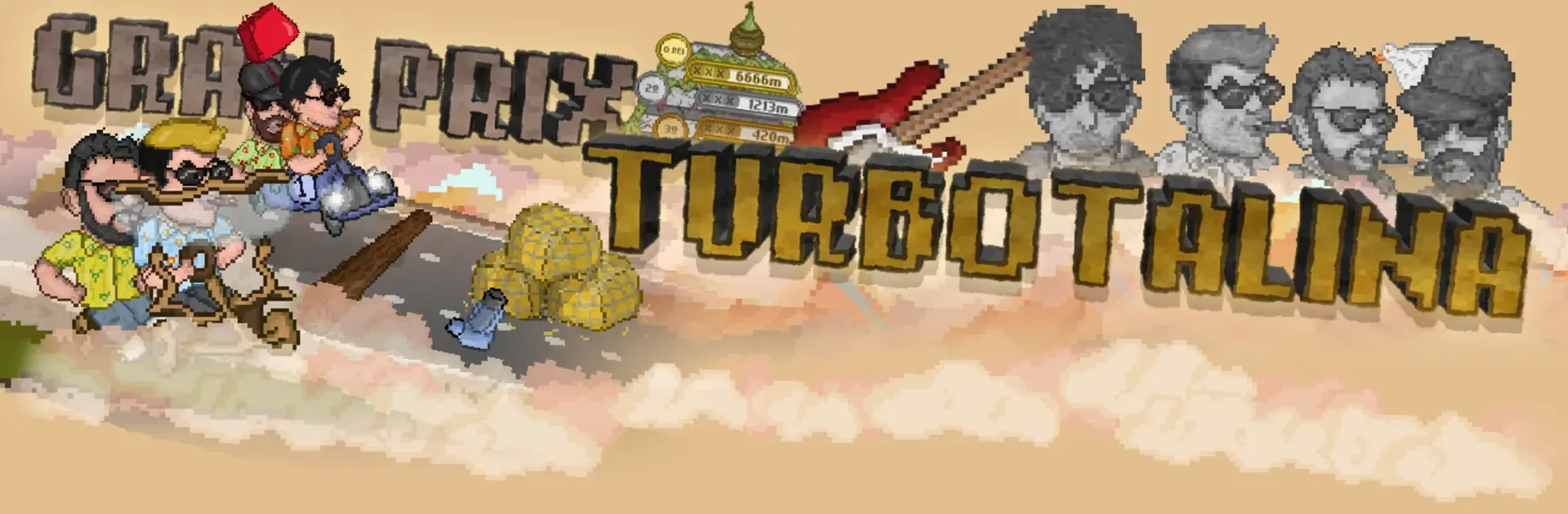 Gran Prix Turbotalina it's an endless runner video game where Terbutalina (galician music band) are the drivers of wood karts downfields, as in Esteiro local festivity. Dribble, get down, jump, throw guitars, pick up "filloas"... While descending the road you are going to face some handicaps and barriers. Explore the main map to find every easter egg. Save "filloas" to afford all the items and kart's designs, from the Classic to The Homer.