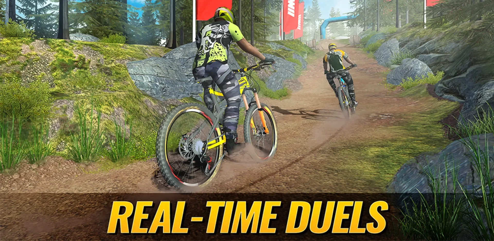 Climb as high as possible in the global ranking - in the advanced competition system. Customize your favorite bike to increase speed, train, and win! Bike Clash is a game where you can challenge players from all over the world! Prove your mountain bike driving skills to them. Get unique trophies indirect multiplayer competition. Compare your results with the best and take part in various events. Drive through the various mountain and forest trails! Discover new locations, compete with more and more powerful players.