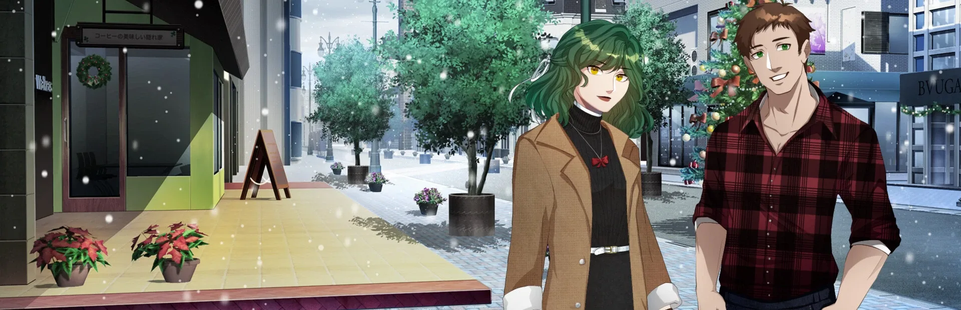 A Christmas Themed Otome Game featuring 50k words, partial voice acting, and custom art.