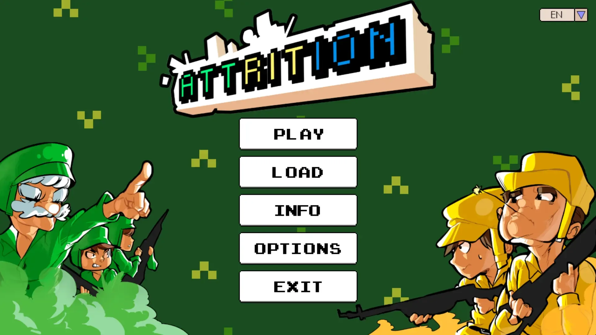 Welcome to a world trapped in perpetual fighting. Attrition is a turn-based strategy game where three countries, Lutem, Bertas, and Cualitas, are constantly at war with one-another. Command their armies in a story of opposite opinions, sacrifices for one’s beliefs, and the quest for a greater goal. Here no one’s completely in the wrong, but no one’s completely in the right. In the world of Attrition armies are simple, consisting only of troops armed with obsolete rifles, and not always having the capacity to move around with ease. A pair of dice controls how far an army can go, so commanders must adjust to every situation and get the most out of the terrain they’re fighting in. Here the lucky have the advantage, but the better strategist comes out victorious.