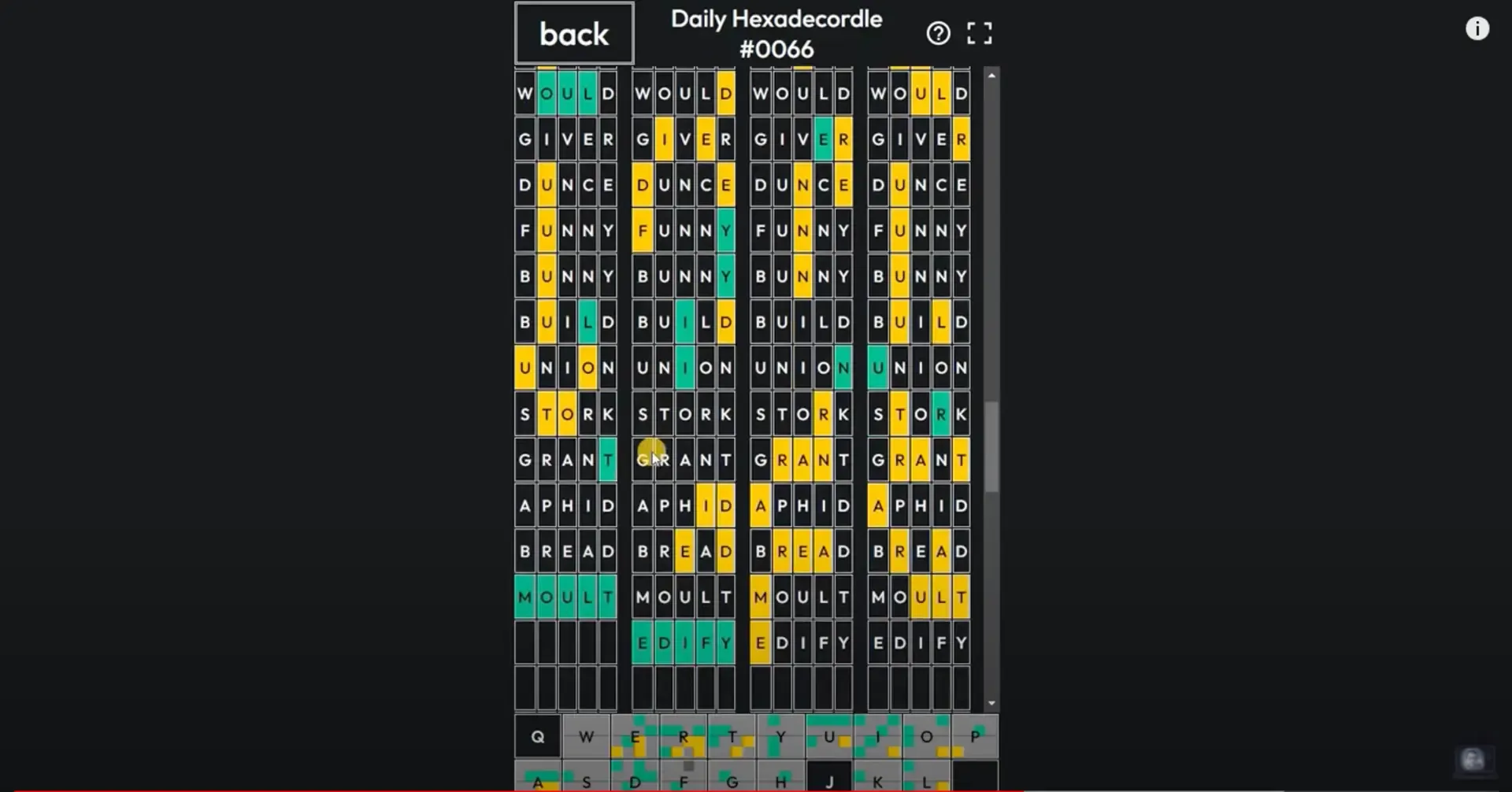 A daily word guessing game where players are given 23 guesses to uncover 16 hidden words. Also includes a free-play mode for unlimited play.