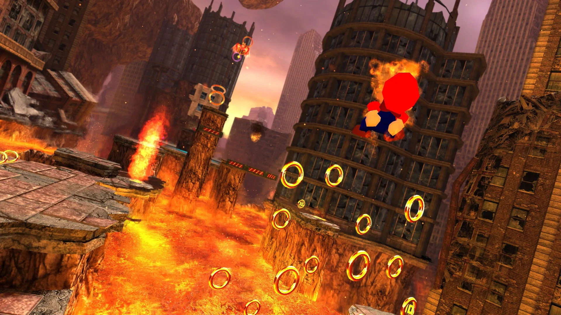 SM64 Generations is a mod that adds Mario from Super Mario 64 to Sonic Generations, including its own abilities (including the famous Backwards Long Jump) and even the Wing Cap. This mod needs both Sonic Generations and Super Mario 64 to work.
