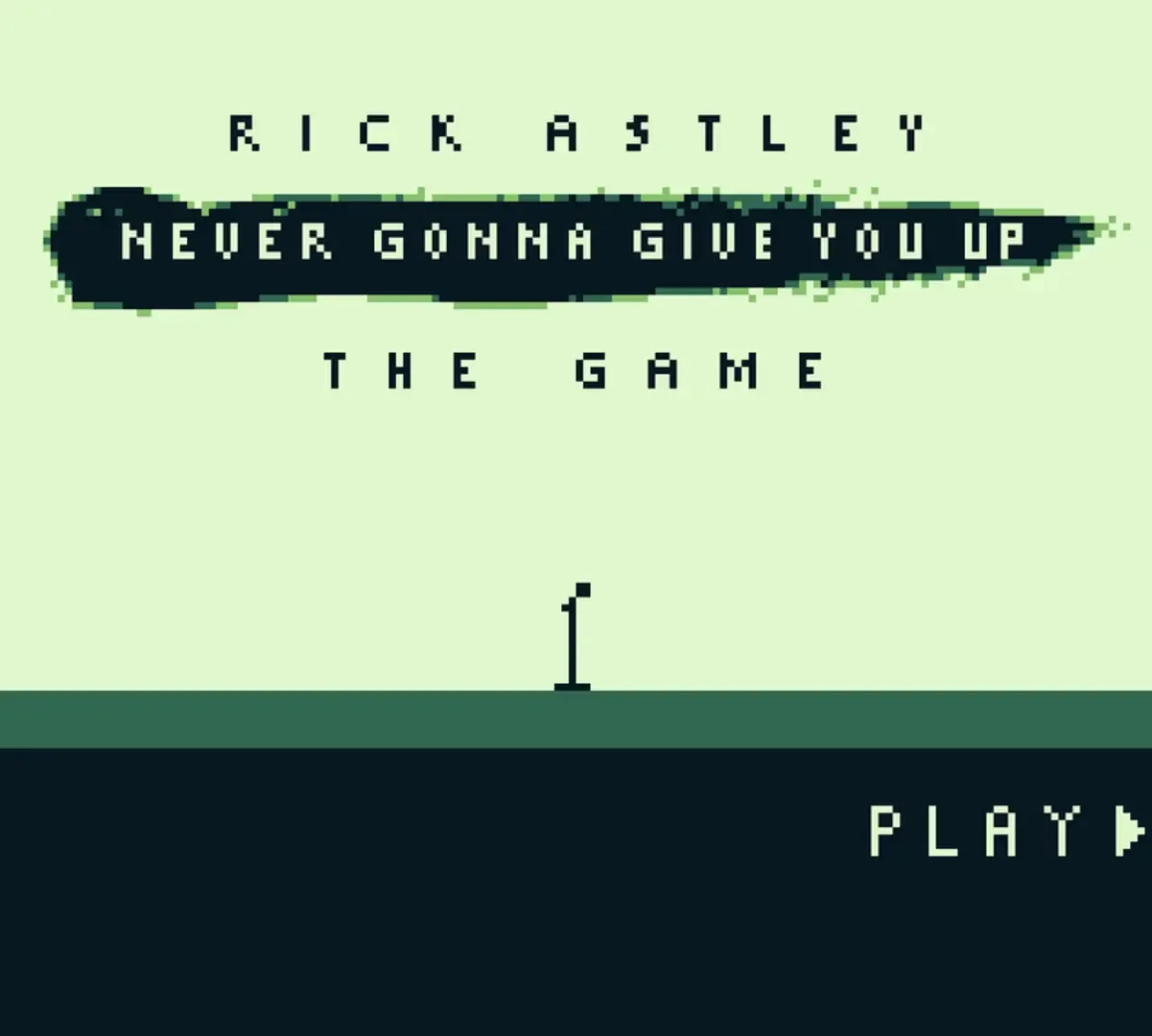 A Game Boy homebrew game inspired by Rick Astley Never Gonna Give You Up music video. It is a mod of "Office Combat" by Robert Doman. Rick Astley must reach is beloved at night-club. As he travels through the city, many people will slow him down.