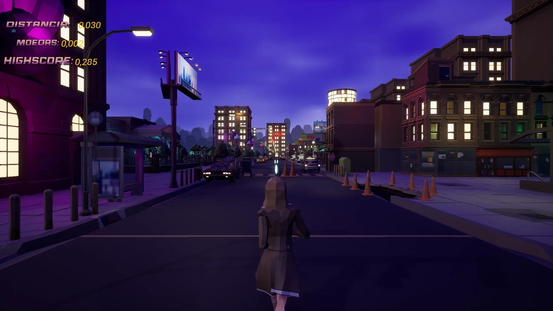 For Runner Night is a single player endless runner game in which the player will be able to run between obstacles and jump, where he will have to dodge as many obstacles as possible, where the player can always try to beat his own record for the longest distance covered.