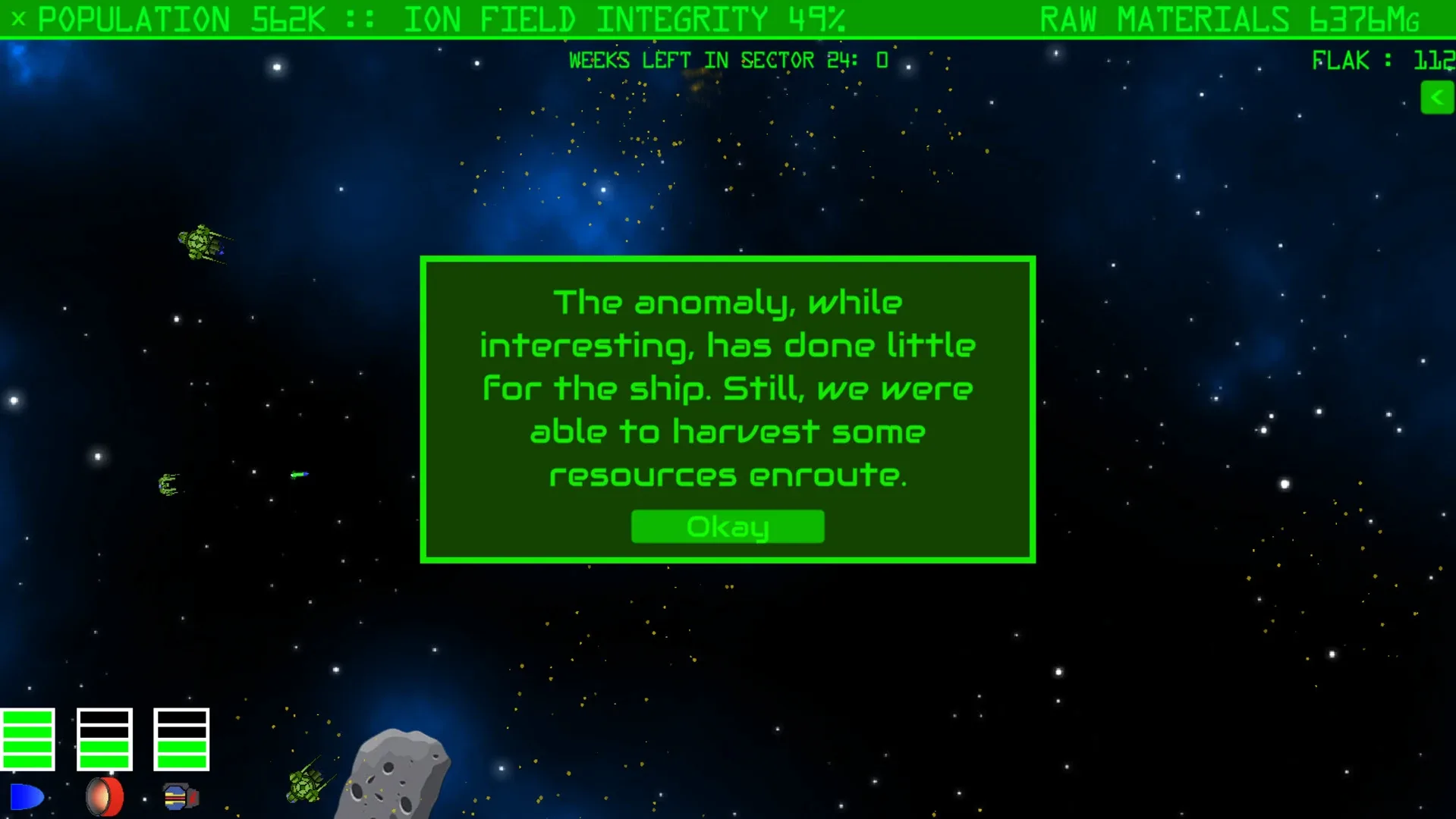 Roguelike missile command. Survive as long as you can aboard the Ark, humanity's last hope, in a hostile galaxy.