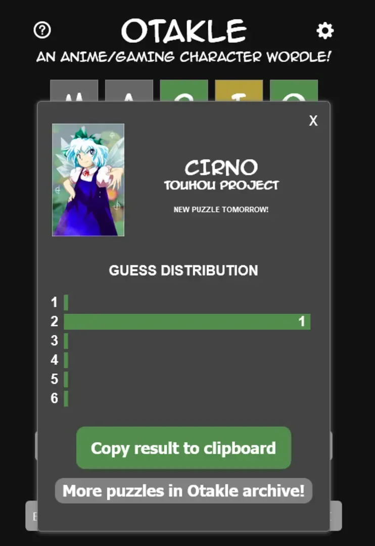 A game inspired the popular web-based game Wordle where you need to guess the name of an anime or gaming character within 6 tries. Every try gives you new hints on who the mystery character is. A new puzzle is available every day at midnight. After you're done with the daily puzzle, you can share your score with friends and see who does better.