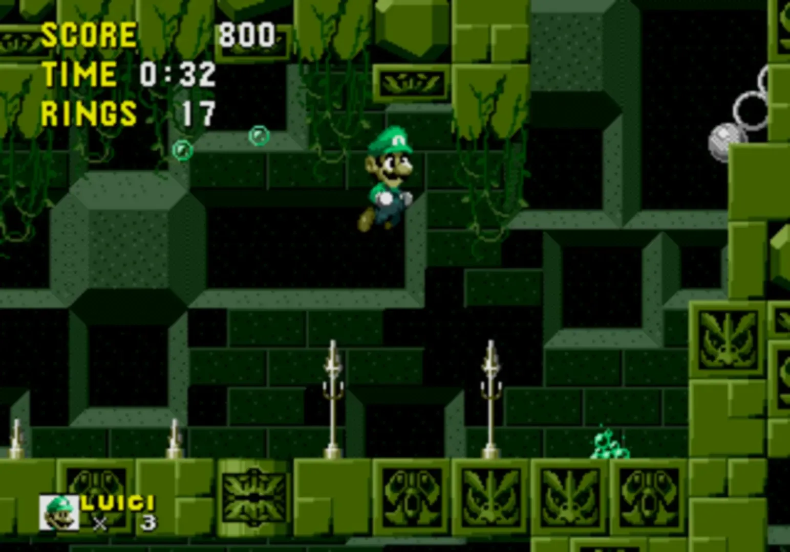 Luigi took a wrong warp and landed straight into Sonic 1!