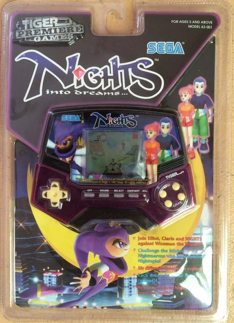 The LCD version of NiGHTS into Dreams is a handheld game created by Tiger Electronics and released as part of their "Premiere" series of LCD handhelds. It is based on the Sega Saturn game, NiGHTS into Dreams. It was released in 1997. A presumably identical Pocket Arcade version was also released.