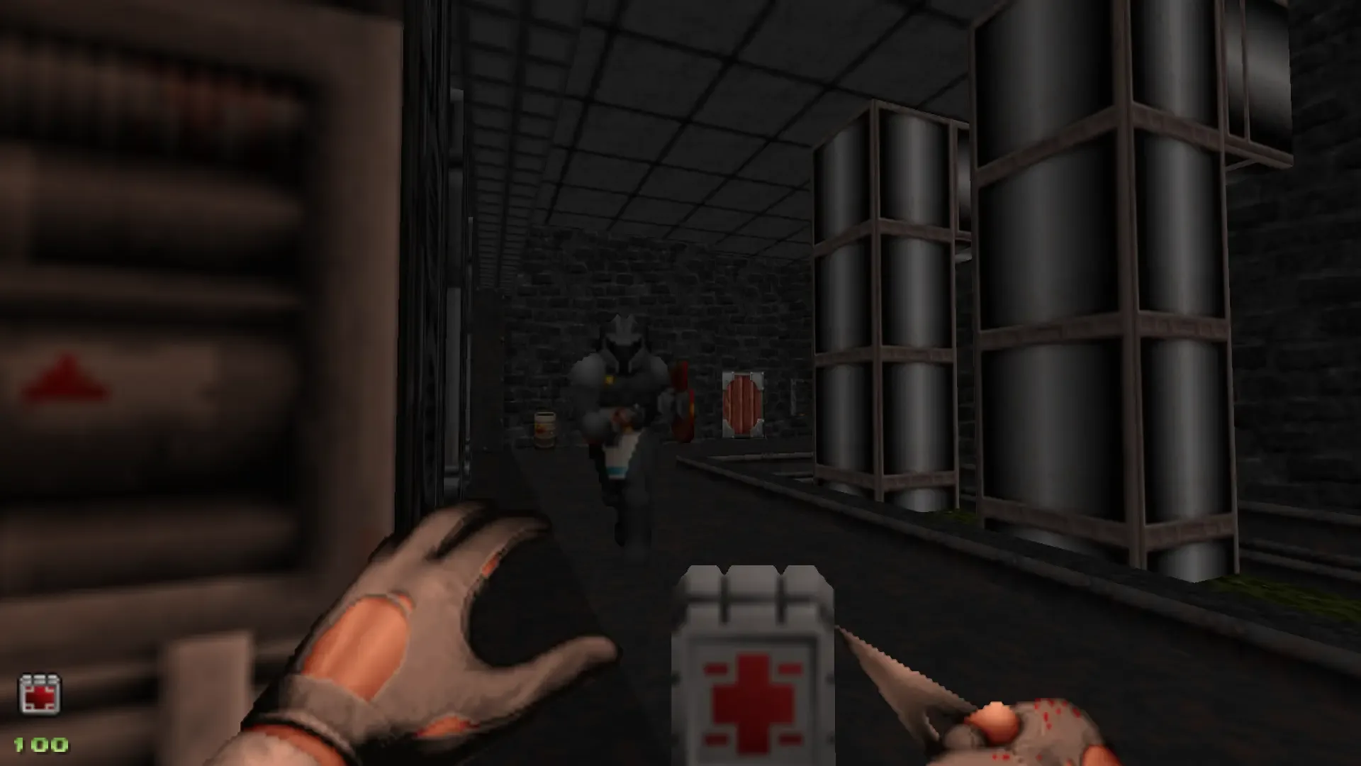 Brutal Strife is a revamp of Strife's gameplay. It adds unique gibs for every enemy, particle effects, smoother weapons, weapons can use their alternative ammo with alt fire instead having to switch to a sister weapon, almost everything in the scenario is destructible (trees, bushes, tanks with experiments) and many other new things like a feature that allows you to take some characters as hostages, or use arrows to climb walls.