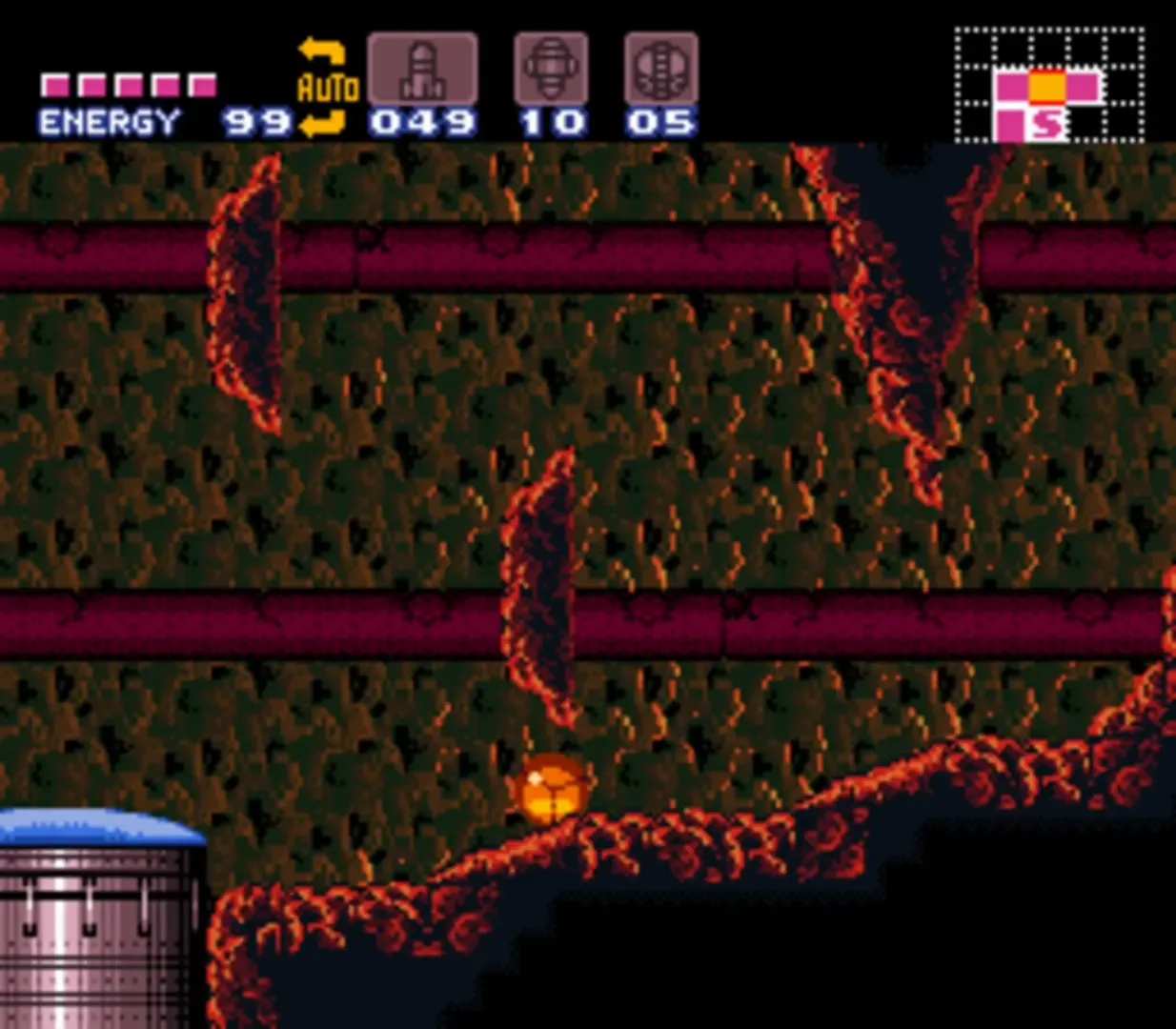It's Super Metroid, but on its side. Play the game with the ground tilted vertically. Samus and the enemies remain upright and the controls are the same, but the game world itself is rotated 90 degrees clockwise. In short, everything that used to be ground is now a wall.