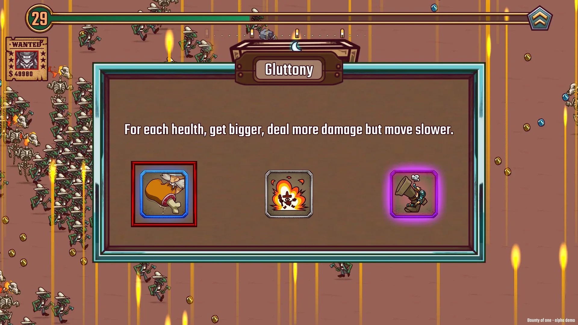 Survive to hundreds of bounty hunters and increase your reward until no one is strong enough to claim it! Bounty of One is a casual game with roguelite mechanics set in a fun western/fantasy setting. Choose your upgrades well and overcome your challengers.