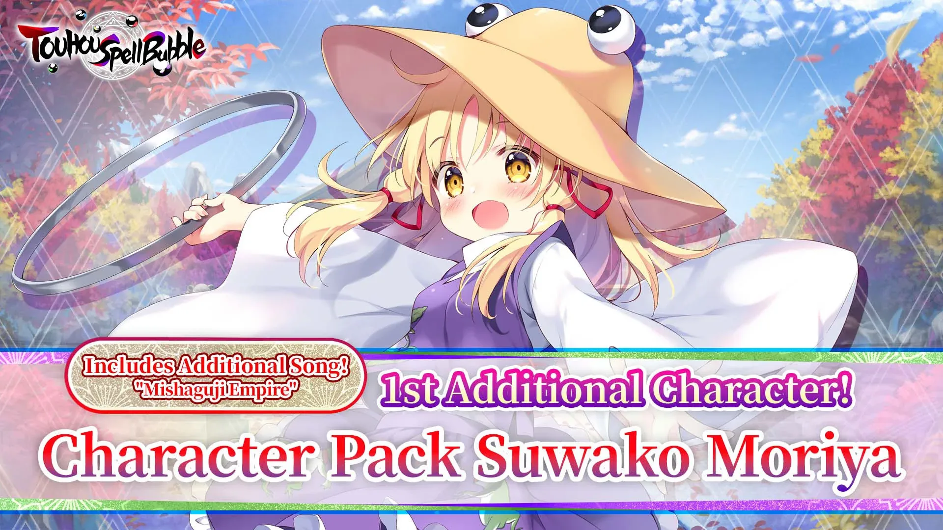 The new character pack is here at last! Our first installment contains the Highest of Native Gods, Suwako Moriya! She has the ability to turn Blank Bubbles into the more user-friendly Awakening Bubbles, and she's got three special spell cards.