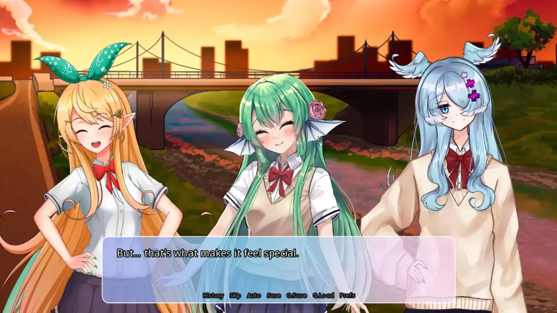 Like a star pulled from the skies, a bird torn of its wings, you were bound to the Earth that day. You once ruled the skies, feeling the air rush through your hair as you flew between the clouds, clothes fluttering in the wind as you raced higher and higher. However, that's all in the past now, ever since the accident. Now, completely opposite to what you once felt, the world is monotonous, gray, and dead. You find no meaning in life, as if frozen in time, now that your freedom was taken away from you. However, that would all come to change with three fated encounters. The appearance of an old acquaintance from the track team, a reserved class president that seems to be hiding something, and a kindred soul seeking solace in the silence. Faced with these new people who suddenly appeared in your life, you have to make the choice. Do you wallow in your failure in this monochrome prison, or do you take their hand and repaint this world? By their side, the hands of the clock start ticking once more.